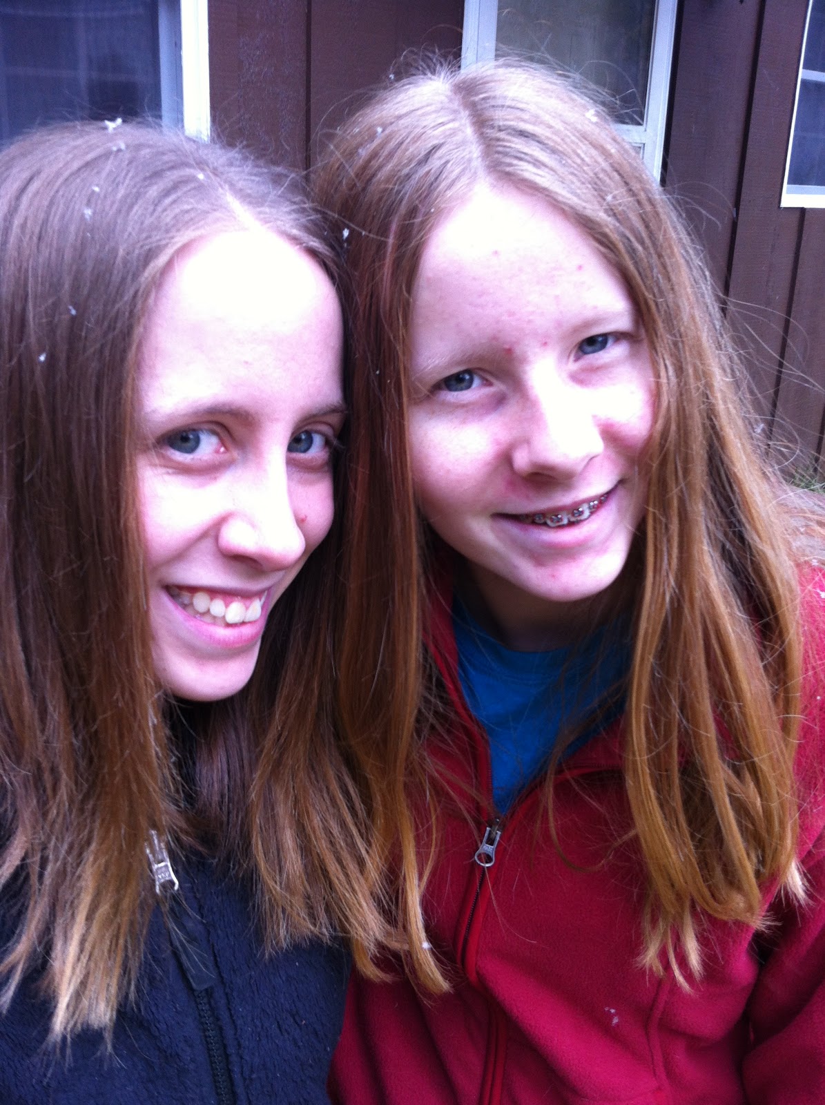 While we were waiting for the first batch to cook we went outside because it was snowing and it doesn't snow that often in Virginia!
